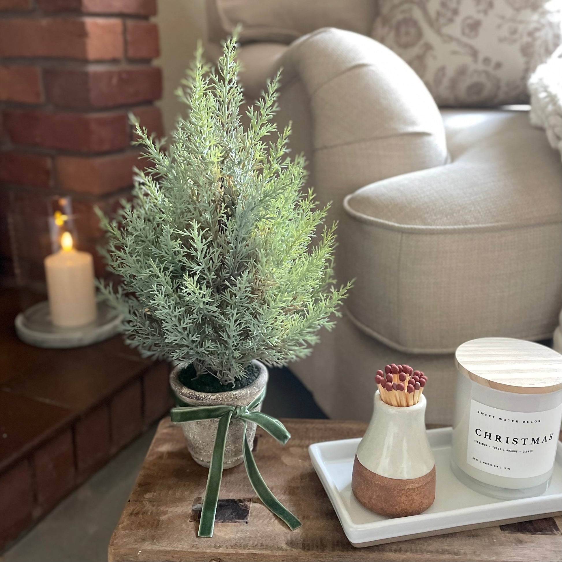 Our cute fir tree is ideal for giving those smaller spaces a festive touch. Chosen for its realism, this faux tree is perfect for styling on tables, window sills or mantelpiece for a rustic, festive farmhouse feel.